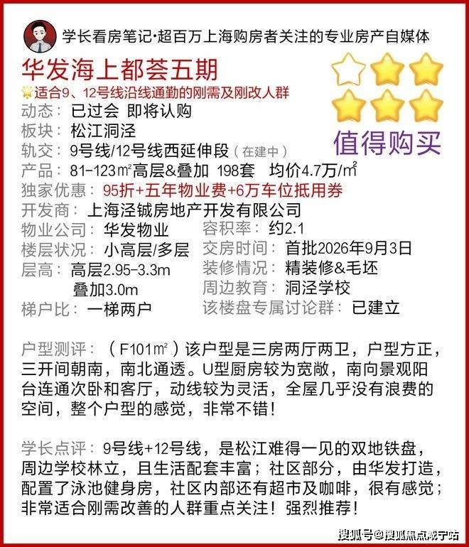 从G60科创走廊的战略红利,到双轨交TOD的交通优势;从全龄段户型设计,到高端社区配套;从精装品质到价格倒挂,华发海上都荟以“六边形战士”的姿态,重新定义了松江新房市场的标杆。2026年,随着区域配套逐步落地,这个承载城市未来想象的品质社区,正以不可阻挡的势头,成为上海西南置业者的首选之地。