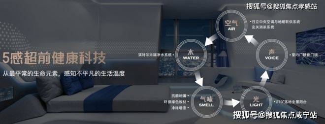 项目在健康方面匠筑5感超前的健康科技,从五个最平常的生命元素,提前为每一位业主感知不平凡的生活温度。