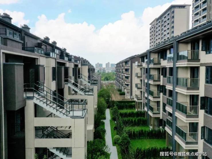 项目占地以叠墅为主,形成静谧高端的墅质圈层。社区整体为现代风格建筑,采用“一街、两轴、两环、四庭、六园、十一巷”营园布局。