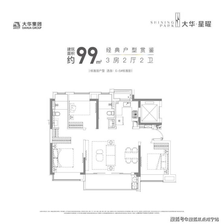建面约99㎡3房2卫