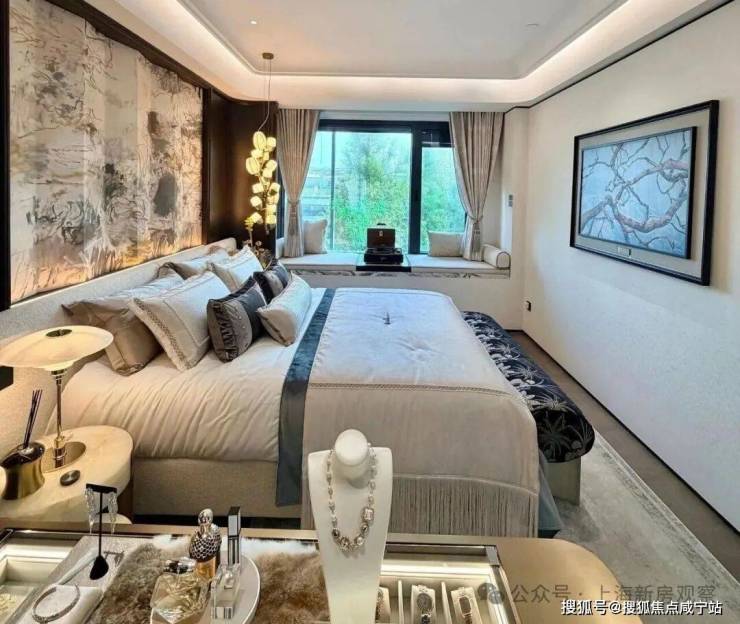 社区主入口更是兼具豪华酒店与海派元素设计风格,挑高约6米的入户大堂、水系景观与艺术家共创作品交相辉映,奢华感和高级感拉满!