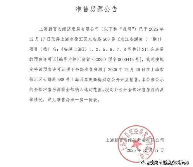 将于12月26日开盘销售