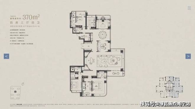 以下为建面约370㎡户型过程稿亮点: