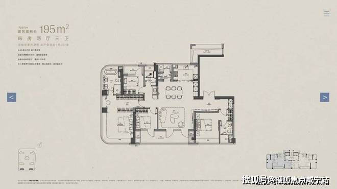 建面约195㎡,总价预计2700-3400万,折算单价约13.8-17.5万元/㎡