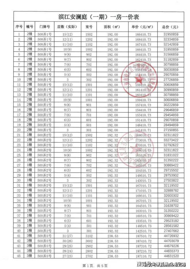 【安澜上海】一房一价表: