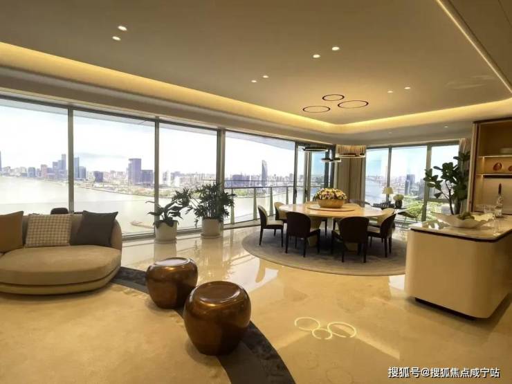 超大面宽横厅,放得下组合沙发、大圆桌、吧台,巨大的尺度感、通透感带来更舒适的空间体验。