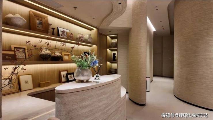 客厅空间采用大量造价昂贵的弧面设计,带来更有格调的审美价值: