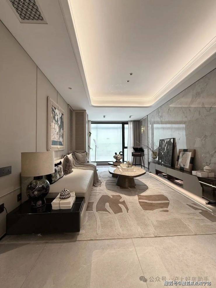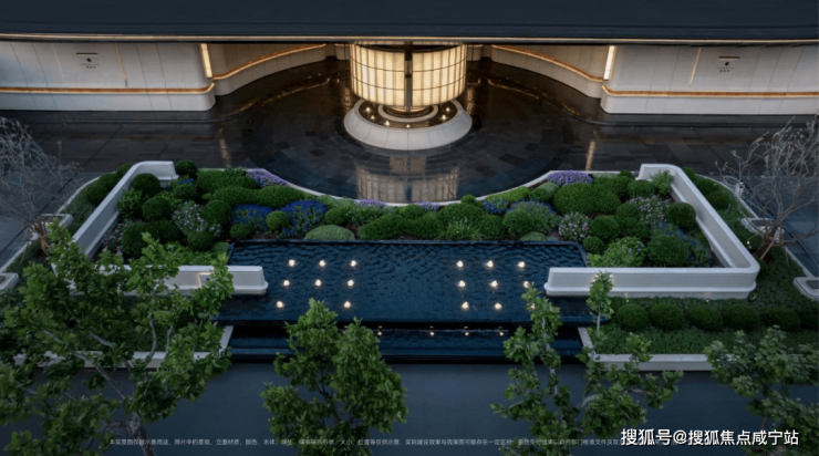 双轴线的设计,充分拓宽了视野面与观赏点位,环形回廊、精神游廊与下沉庭院通过立体景观平台相融,又创造出隔岸听泉的诗意场景。在每个重要生活触点,业主都能拥享独特景观和欣赏视野。