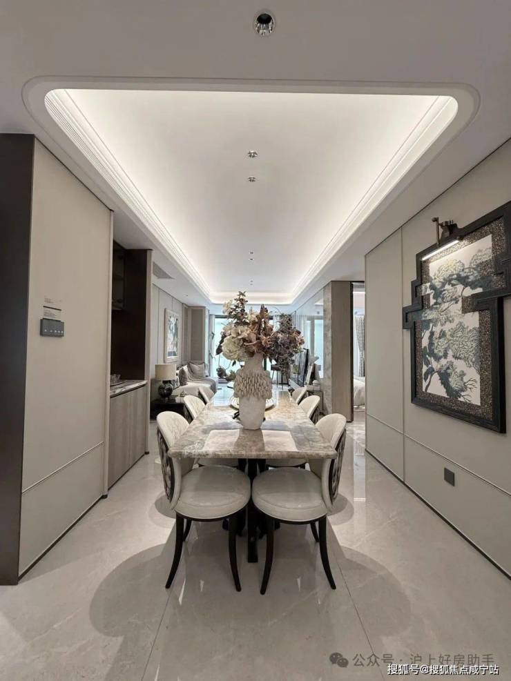 不同于寻常项目进门后直接进入小区,招商序打造约4.5m高的迎宾楼,玄关左右两侧均可通行,且各建有一处会客区域,给到了业主更多元和更具仪式感的归家场景。