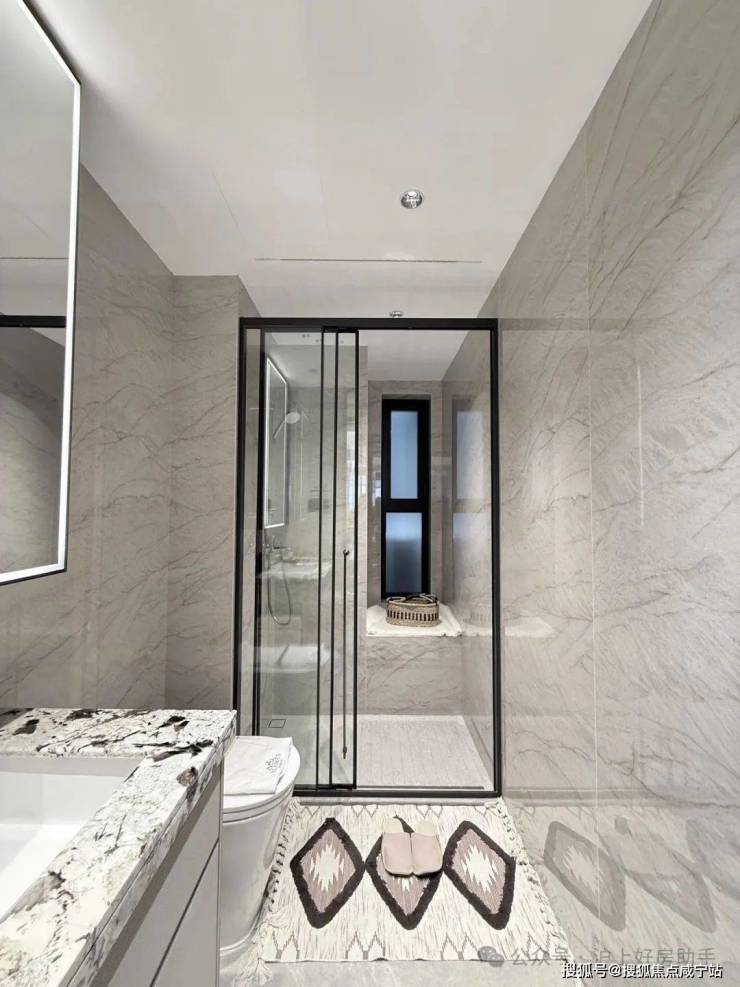 豪华的套房设计,北侧卫浴飘窗+南向床边双飘窗的设计,更是把这个空间的视野和收纳空间延展开来,尺度感真的很惊人。