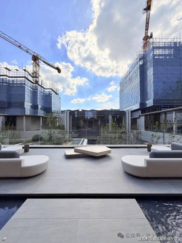 社区景观方面,项目运用室内手法室外化设计构想,将垂直景墙、悬浮观景台与叠水景观立体穿插,形成情随境转的沉浸式体验,自然元素渗透进室内,并与室内空间动态互动。