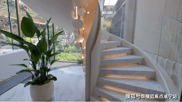 走出下沉式会所,便来到了下沉庭院花园,这里宛如一座隐藏在社区中的自然秘境,以独特的约6米山石瀑布景观,成为整个示范区的点睛之笔。