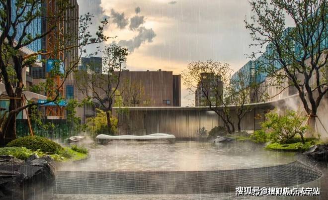 未来,水系穿行于约800㎡的下沉庭院之间,场景之中,水、灯、石、树、墙等等装饰元素有机结合,每一种细节元素背后,都有各自所代表的符号语言。