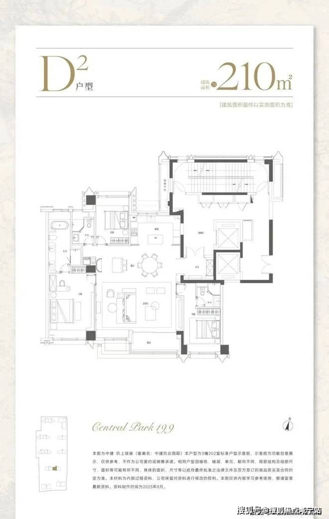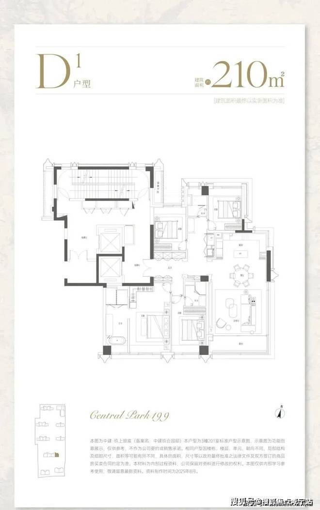 建面约210㎡,分为中间套与边套产品: