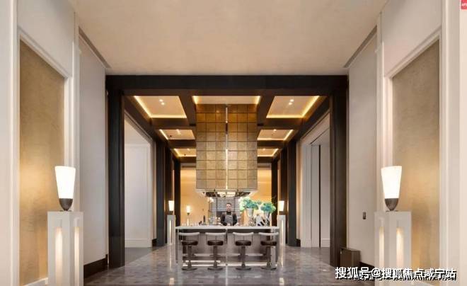 建面约190㎡ C户型,两梯两户,私享梯厅,家的玄关尺度,延伸至电梯厅,增加实际使用面积。入户处大师定制瓷板门牌画,私属感满满,打造专属归家仪制。