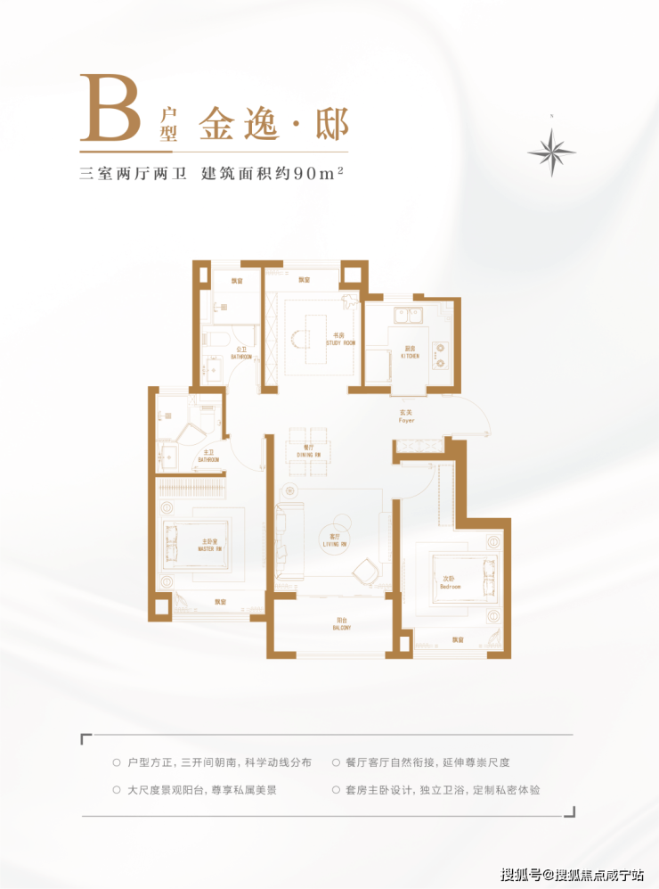 约90㎡做3房2卫,主卧还是套房的设计。这个户型的实用性,堪比100㎡左右的户型,能满足从二人世界到二胎的全生命周期需求。