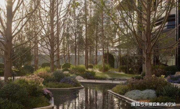 三层归家动线:从地面景观层到架空层,再到入户层,穿越绿植、光影与水景,步步进入私域。