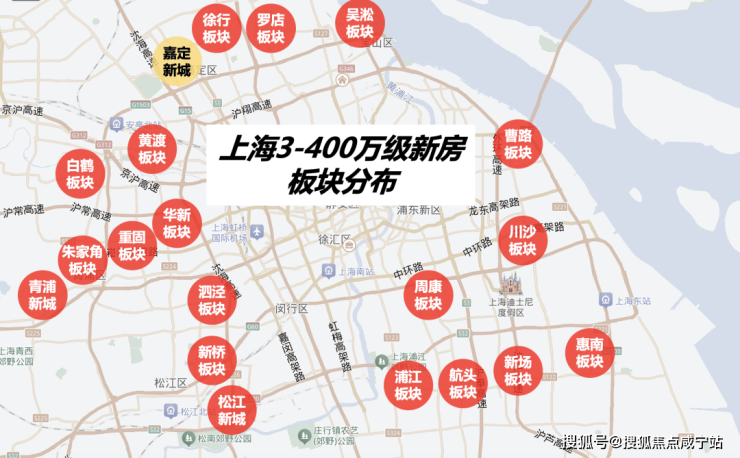 小编经过梳理,考虑年轻购房者上下班通勤的时间因素,剔除了崇明、金山、奉贤等距离主城较远的区域后,300万级新房置业有20个板块选择。
