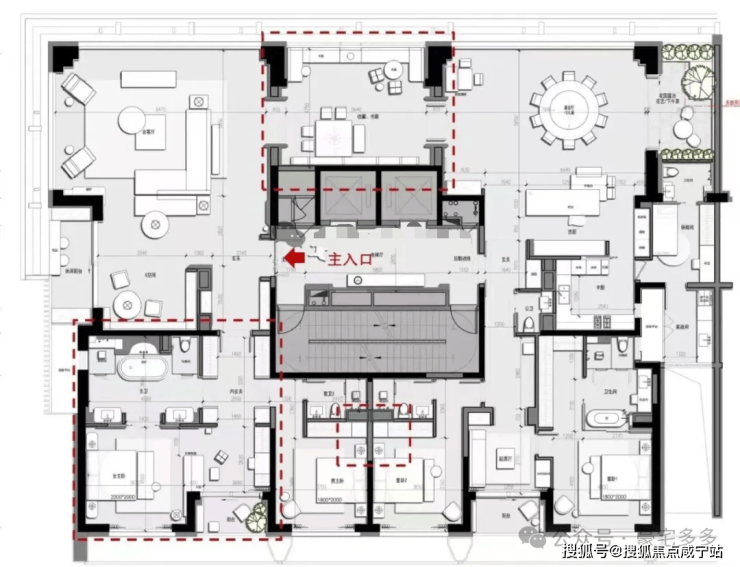 建面约175㎡四房两厅三卫:270°转角端厅设计,主卧270°环幕视野,双主卧套房配置,尊崇感拉满,堪称终极改善之选。