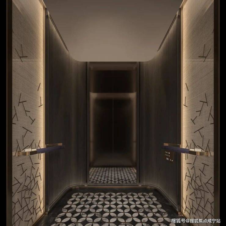电梯门:采用张天军的《浪涌》的艺术画作灵感,通过金属蚀刻技术,模拟海浪奔涌的动态,寓意“风定波平,开门见山,事业有靠山”;