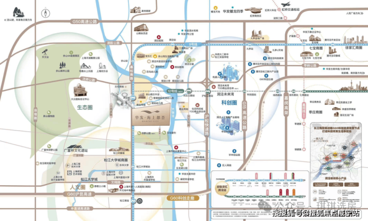 合心规划产城样板:【“科创+人文+生态”城市单元示范】华发海上都荟首入松江,携崭新“优+产品体系5.0”,为洞泾、乃至为松江带来目前区域内综合高品质作品。结合上海生态环境保护“十四五“规划,站位国际领先的可持续性项目规划,华发海上都荟结合自身的独特聚合优势,在传统TOD规划之上,不可复制的土地生态资源,向东链接G60科创走廊“以镇命名为区块”洞泾人工智能产业基地;向南直达亚洲大学城之一——松江大学城;北侧紧连上海陆面自然山林资源——佘山国家旅游度假区。板块将区域打造成为“科创+文教+生态”交汇的核心新城模式,划立一个崭新的城市单元示范。