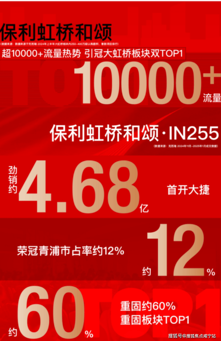 面对市场预期升温窗口期,保利虹桥和颂·IN255以300万级精奢三房、500万级改善四房迭代升级产品,强势锚定板块进阶需求,首开即强势斩获4.68亿元业绩,更以单盘青浦约12% 、重固板块约60%市占率,焕新激活板块价值跃迁。(数据来源:克而瑞2024年11月-2025年1月成交数据)