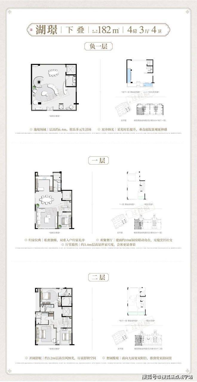 下叠产品主打 “庭院+地下拓展” 的全能改善体验!南向入户庭院,归家仪式感拉满;一层餐客厅层高3.4米,地下室6.4米,空间拓展性极强