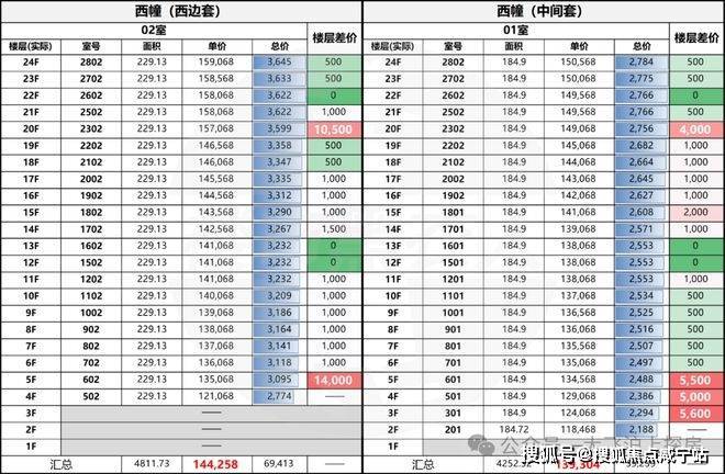 一房一价表