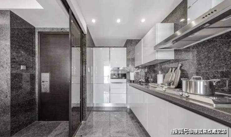 建筑方面,白金湾府邸采用现代风格设计,外立面简洁不做过多的装饰,采用黑干挂石材,内衬XPS保温板,东西转角采用玻璃幕墙设计,可以270度观察黄浦江景色.