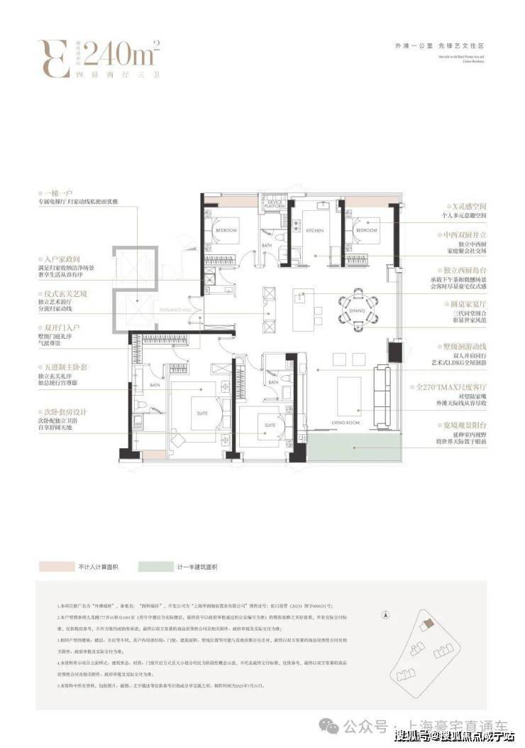 户型设计方面,项目提供120㎡三房、160㎡四房、240㎡4+1房等多种户型选择[10]。其中125平方米户型采用横厅设计,160平方米户型则创新性地在北侧书房设置飘窗,极大提升了空间的实用性和舒适度[11]。值得一提的是,高层楼栋90%的房源可享受江景景观,部分户型更可享受270°环幕江景,将黄浦江美景尽收眼底[12]。