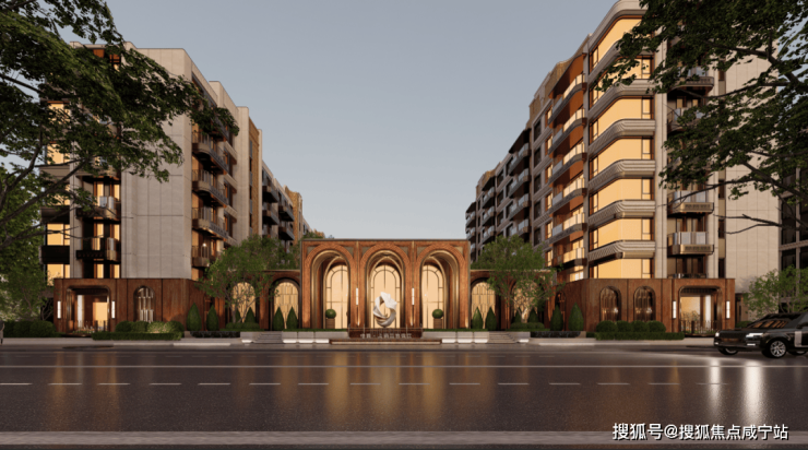 从超50米轩阔门仪的门庭起步,经缦水华庭、下沉庭院,再到湾畔花园,最后抵达单元入户,层层递进。