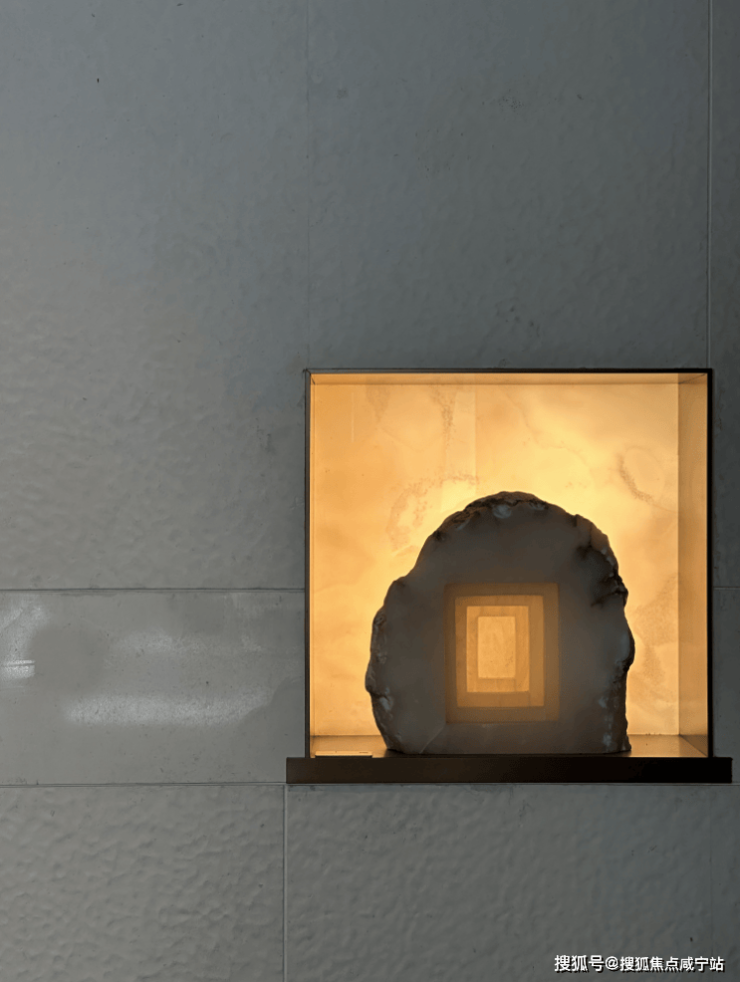 壁灯的质感,就如同摆放的西班牙云石一样,拥有粗粝的质感,又拥有几何形状的深邃,张力非凡。