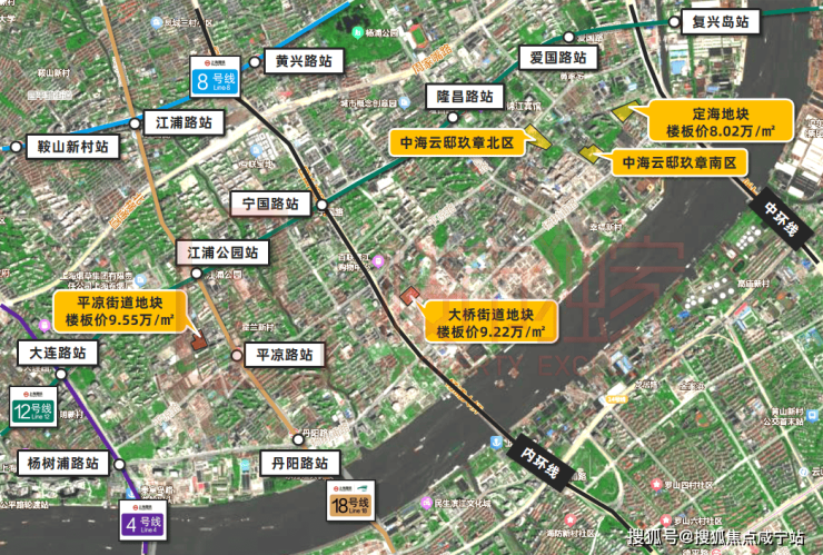 同为内中环间宅地,今年5月定海路宅地,楼板价冲高至8.02万/㎡;
