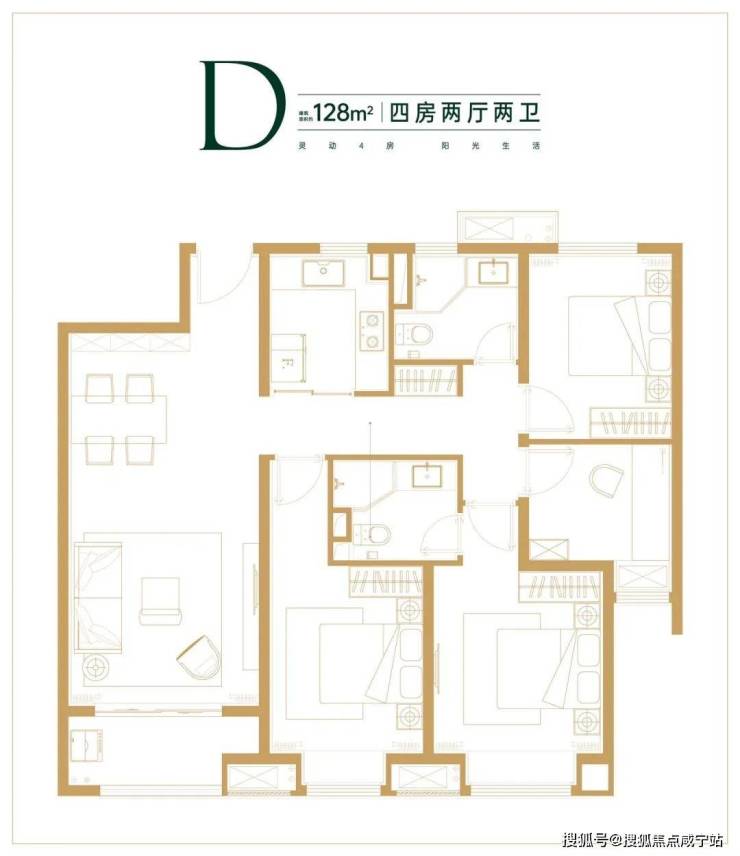 128-144㎡四房:主卧套房设计,双阳台观景。