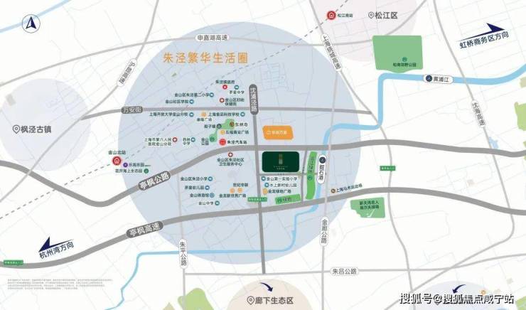 交通升级:南枫线+嘉青松金线(规划中)双轨交汇朱泾,强化长三角1小时生活圈。