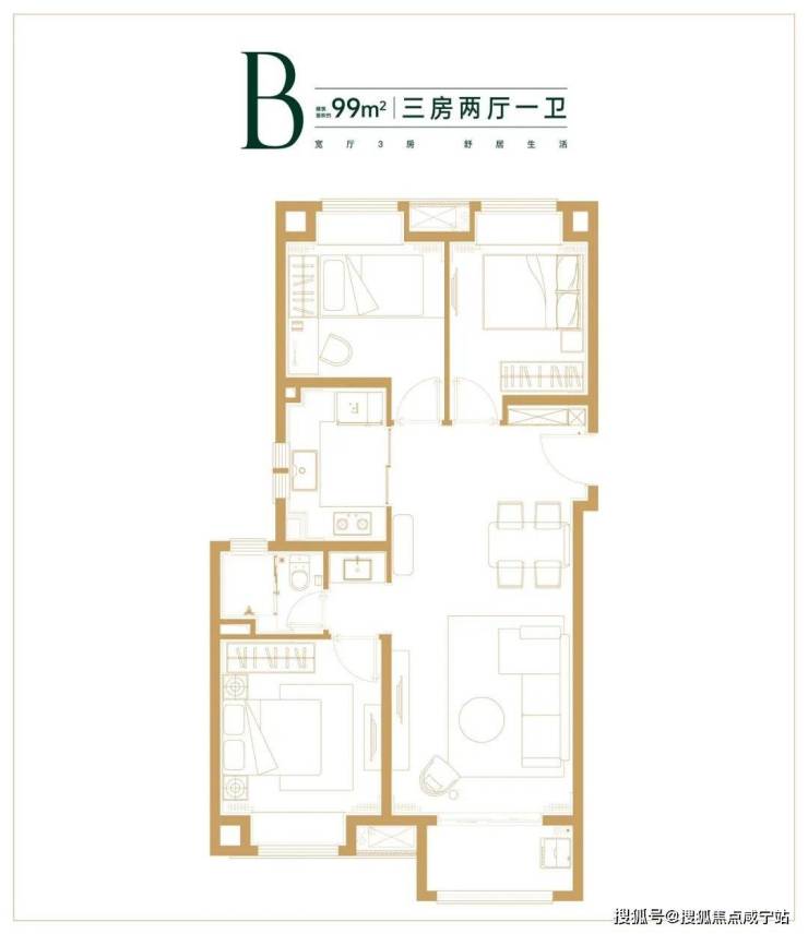 99㎡三房:动静分区,满足多孩家庭;