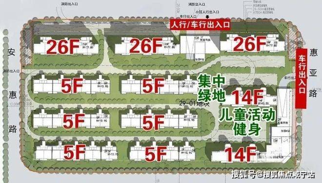 ✅✅华润华发·时代之城售楼处电话:400-8800-703✅✅29-01地块原设计方案,将北面人行/车行的出入口向西侧的安惠路方向进行了调整,并疑似将北面的主入口调整到了惠亚路一侧。
