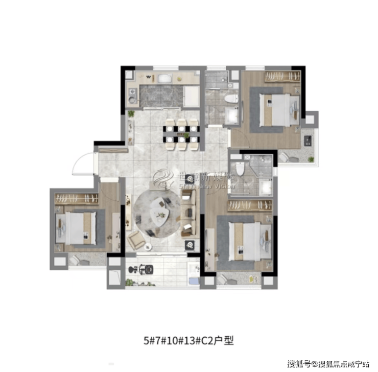 一体化公区设计功能齐全尺度套房,私享明卫/衣帽间