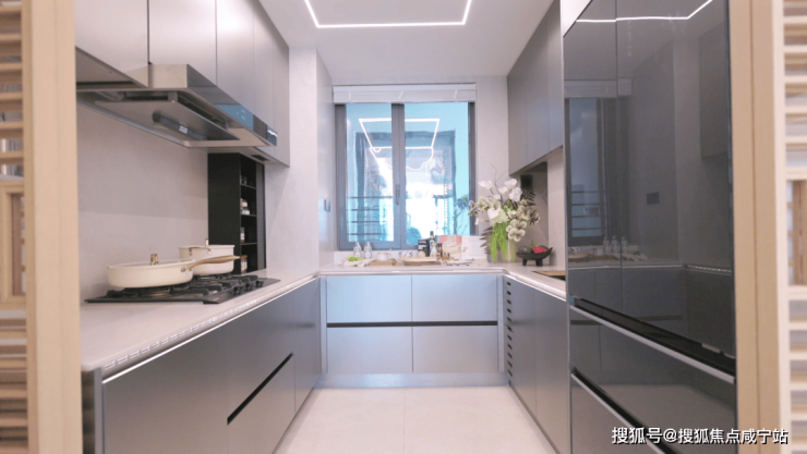 收纳设计,堪称空间魔术!厨房拥有6大超级收纳体系,涵盖镂空门板屯菜柜、伸缩拓展平台、电动调味舱、踢脚抽、倾易抽、双层轨道抽等,让每一处空间都物尽其用!