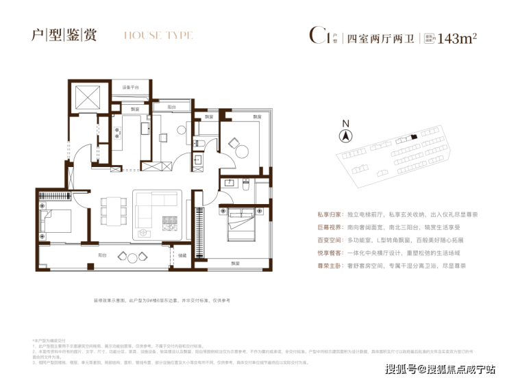 2、约4.8米宽厅+三开间朝南的布局,让整体空间感比肩常规140㎡户型;