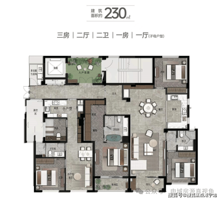 230㎡ 子母户型 三房二厅二卫/一房一厅一卫