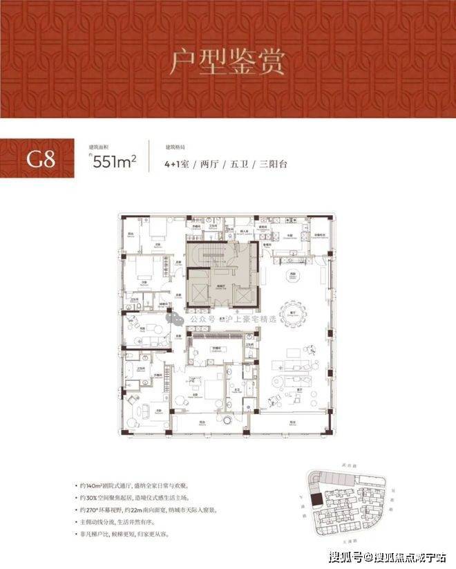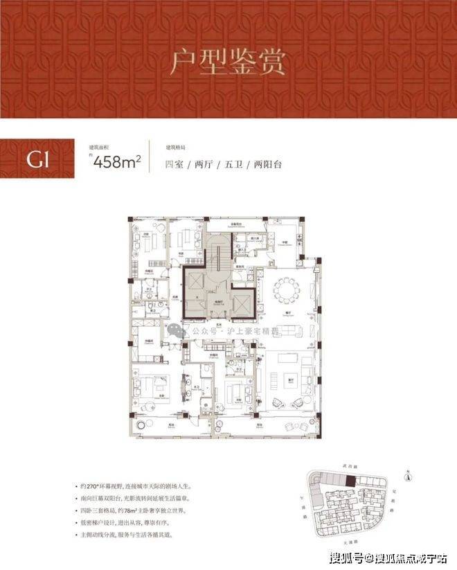 顺应地块优势,G-8户型将南向约22米、东向约23米的超大面宽充分展开,通过超高窗墙比构筑270°环幕式视野,正对乍浦路桥及三件套等核心景观资源,将城市风景纳入日常生活画卷。