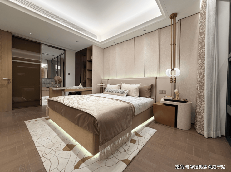 床尾可以再做一个床尾矮柜,甚至还能放得了一个床尾凳。