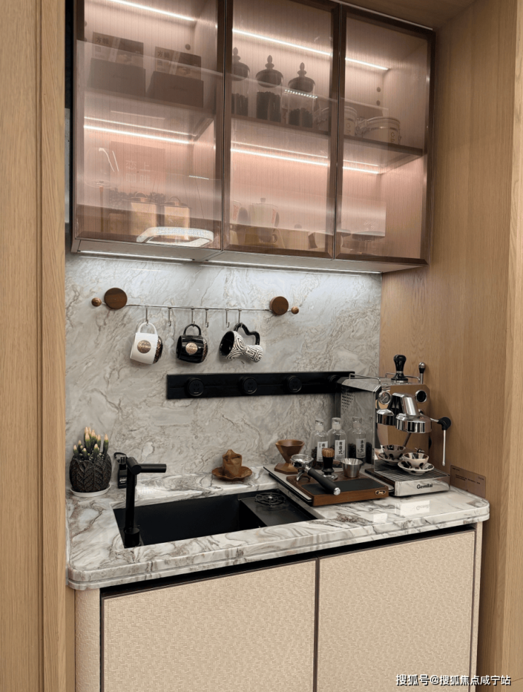 这可真的太懂餐边柜的作用了,泡茶泡咖啡泡奶的时候可能要随手洗一下杯子啥的,这里就一次性全部解决了。