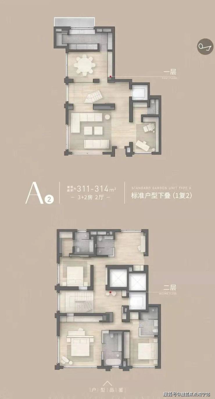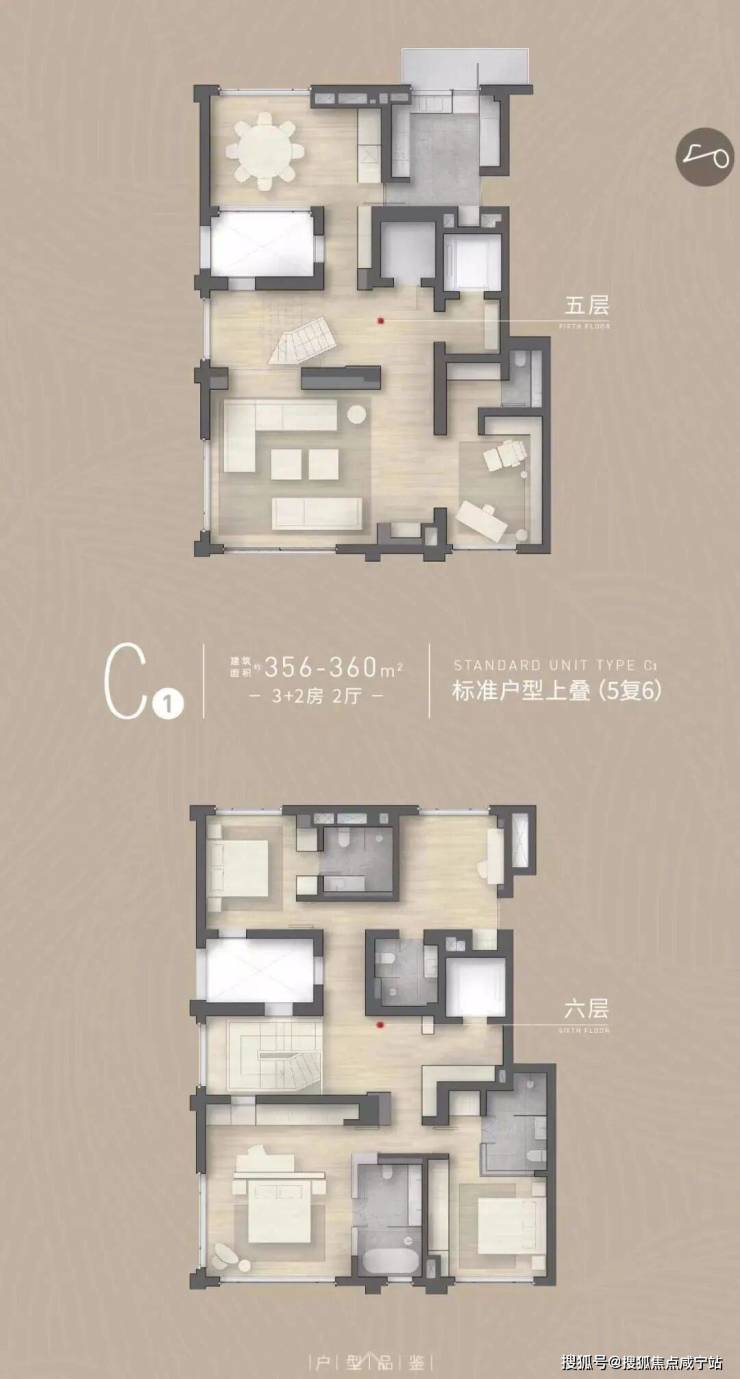 沁风雅苑主力户型为约310-360㎡叠墅(1复2,3复4,5复6,共6层),五房两厅五卫。