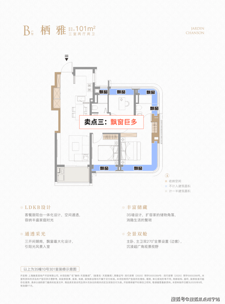 足足6个飘窗,在我的印象里,这已经是百平3房里独一档的存在!