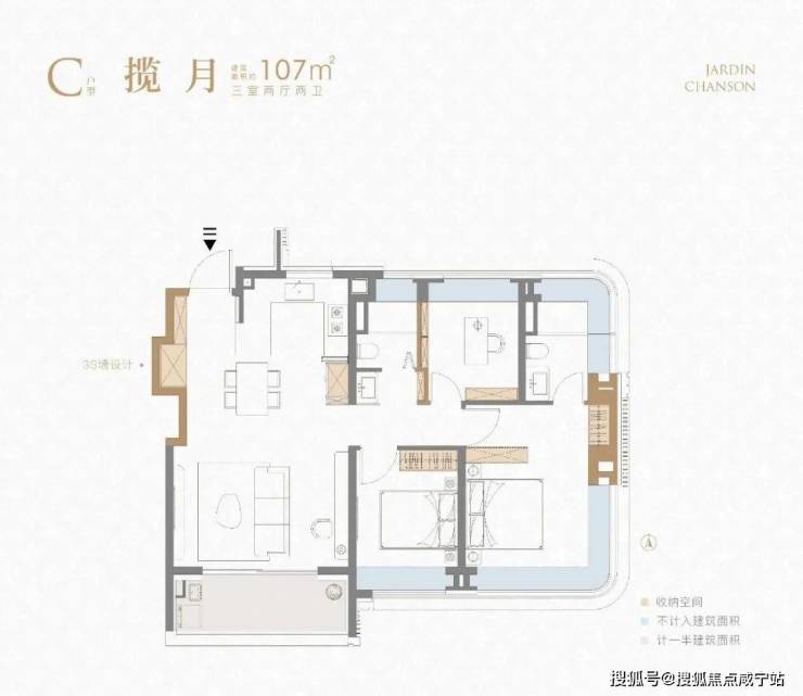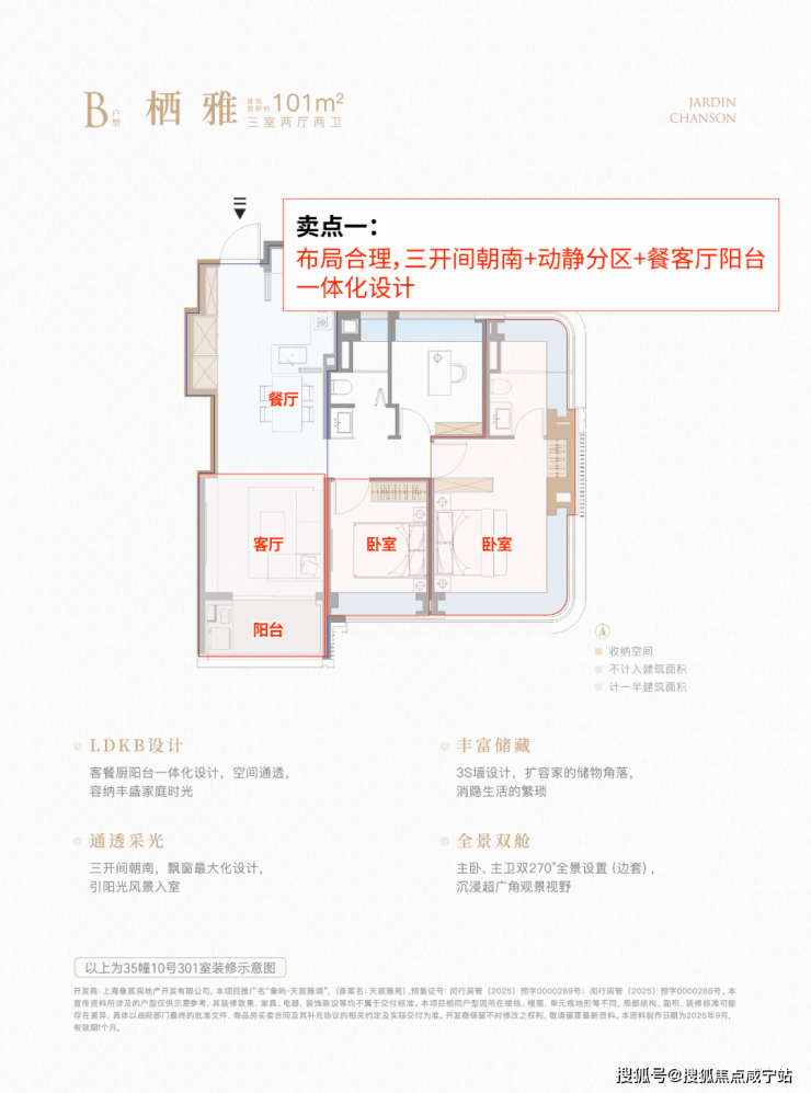 其三,北地块建面约101㎡3房产品具备划时代的创新意义。
