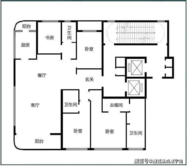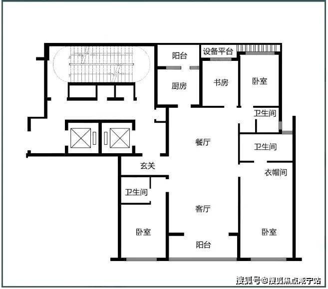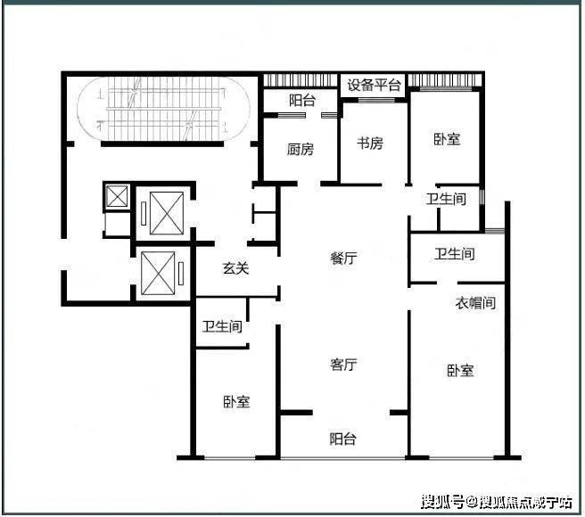 215㎡的纵置核心筒户型,与横置核心筒相比,整体布局更加紧凑,但功能分区同样出色。