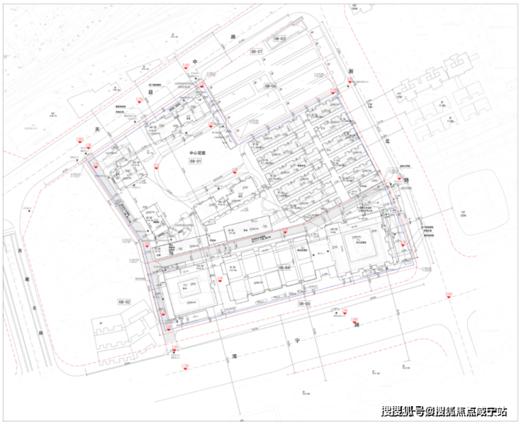 08-01地块设计了G1、G2、G3三栋超高层住宅,分别为39-44层不等;低密住宅区楼间距只有6米左右。