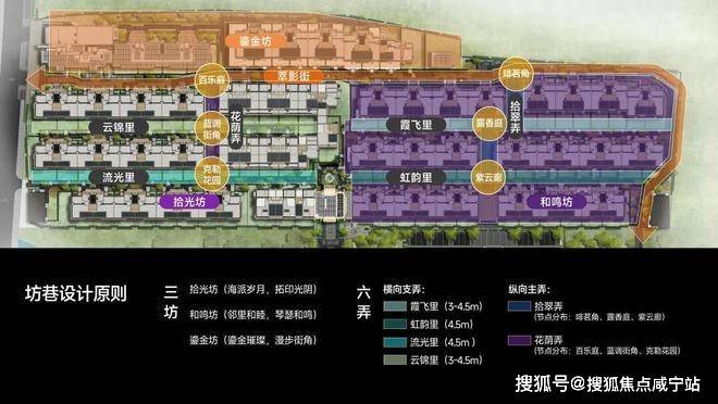 花荫弄、拾翠弄、霞飞里、虹韵里等主题巷道,宽度约3-4.5米,尺度亲切,一步一景